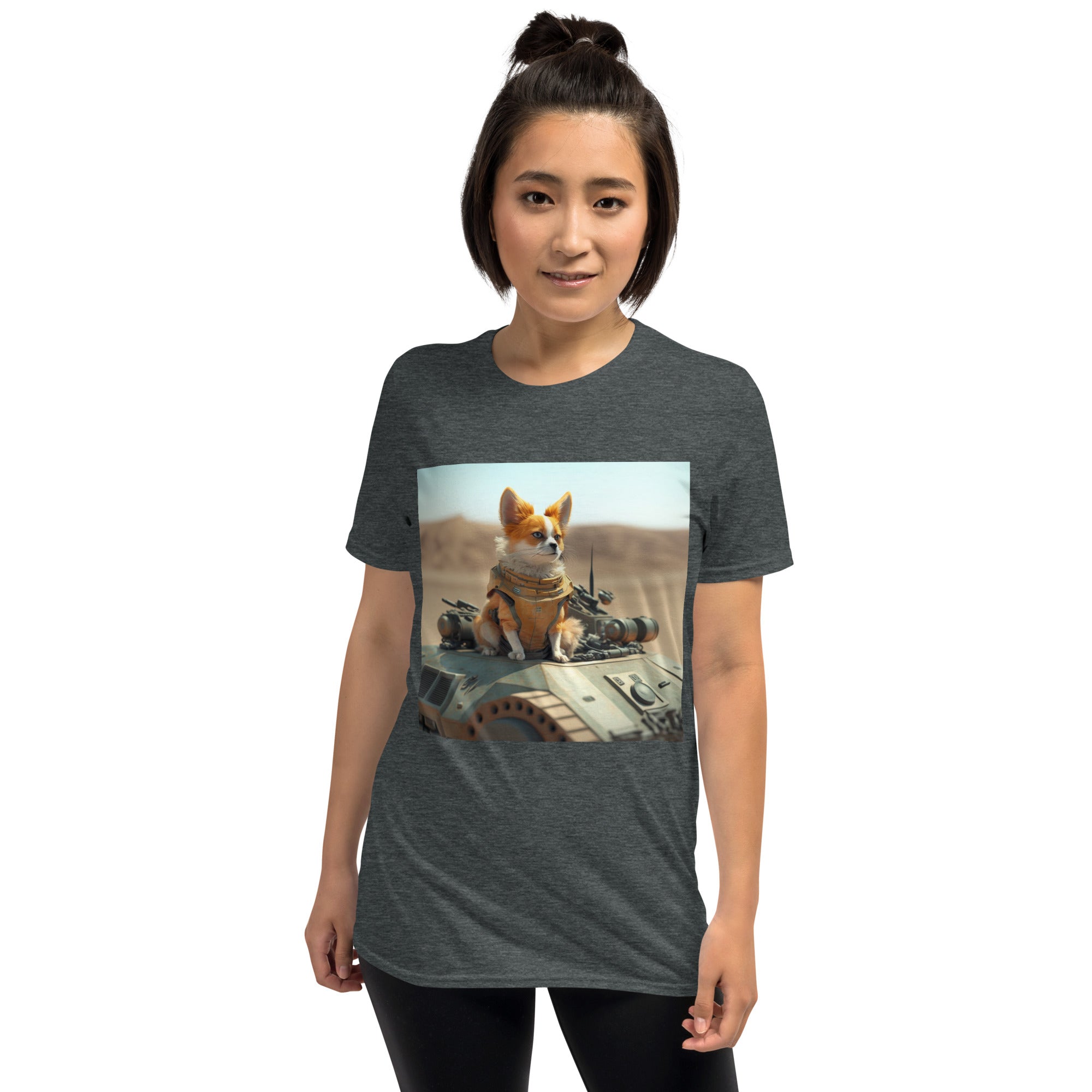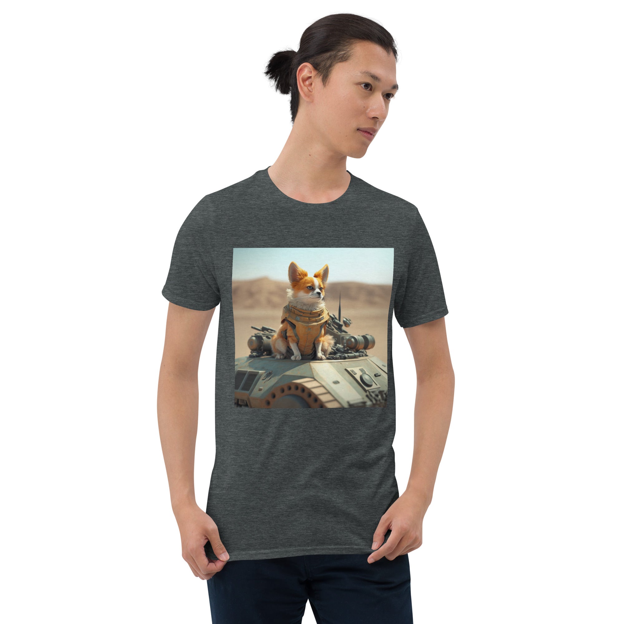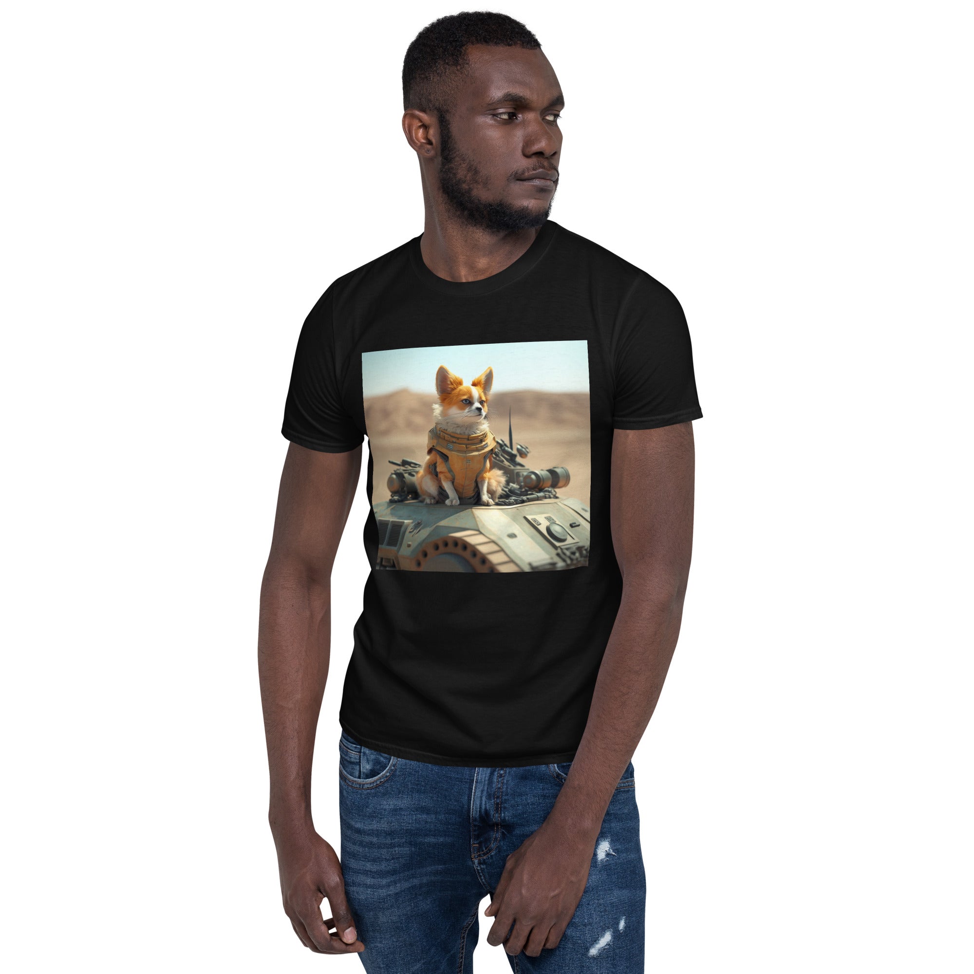 You've now found the staple t-shirt of your wardrobe. It's made of 100% ring-spun cotton and is soft and comfy. The double stitching on the neckline and sleeves add more durability to what is sure to be a favorite! Ai generated image.